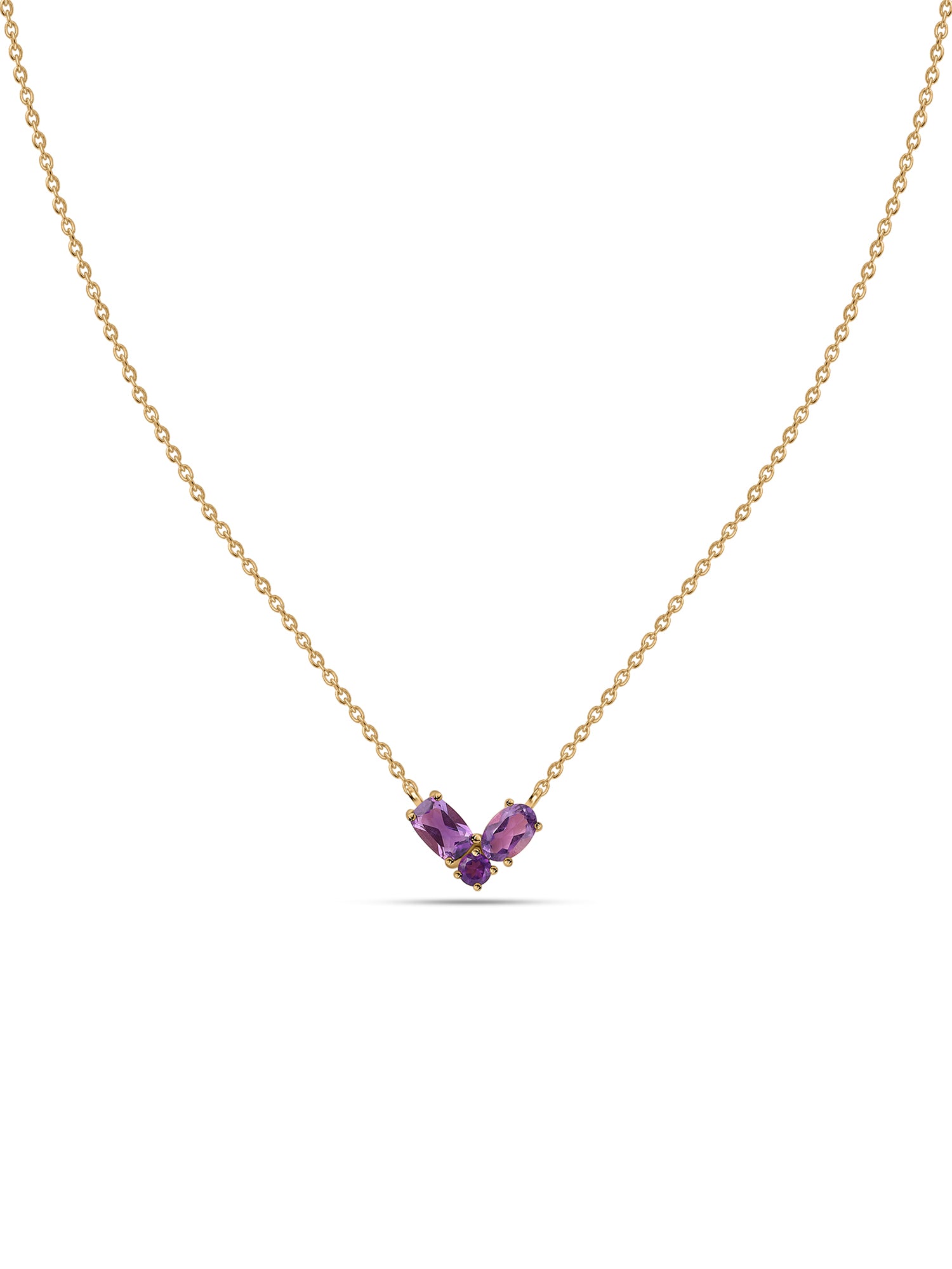 Two ovals of amethyst and a round balance this design so beautifully, making it a hard-to-find design.