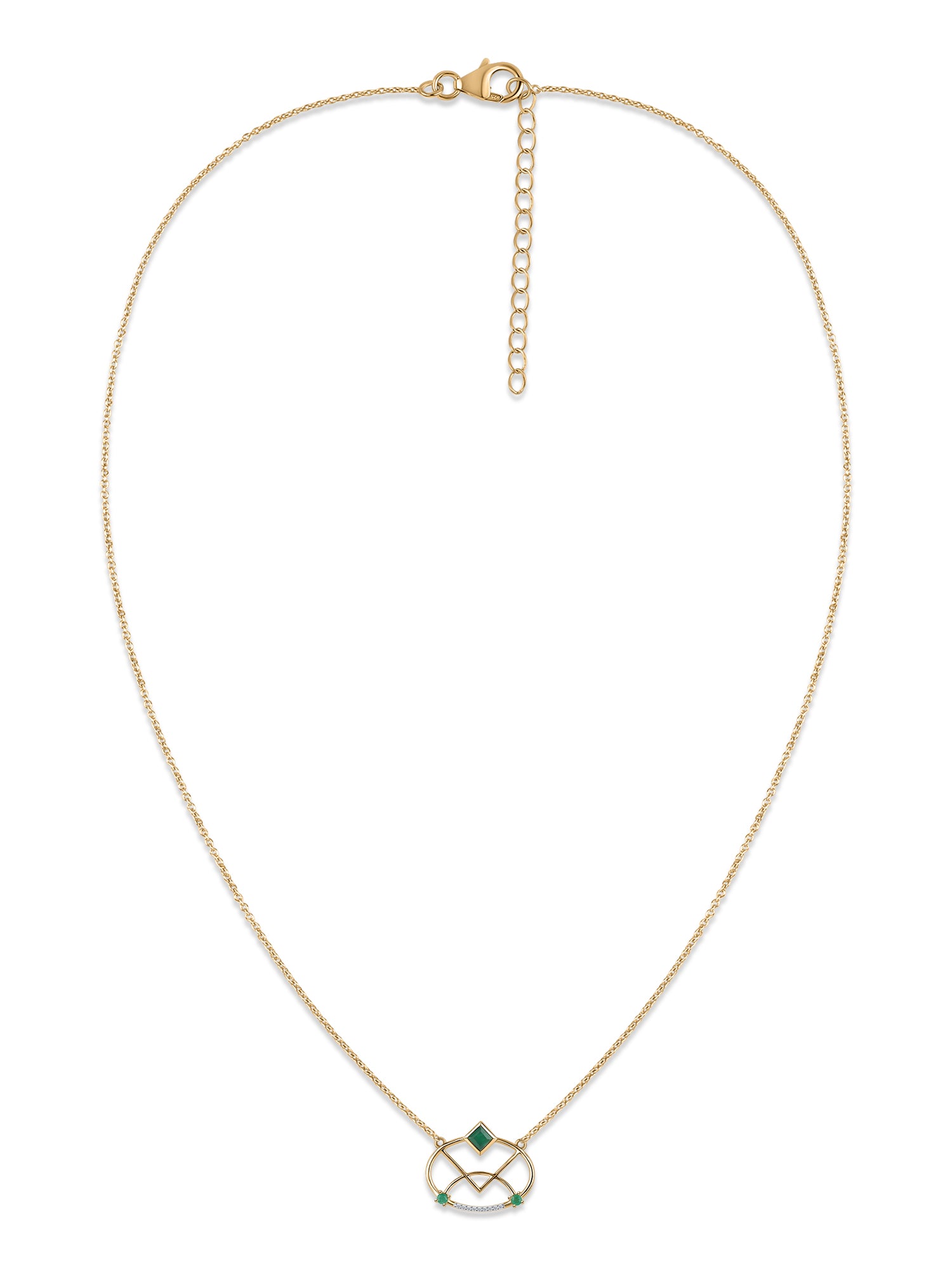 A unique design of pendant design for you boasts natural emeralds and white zirconias, making this jewel a unique design.