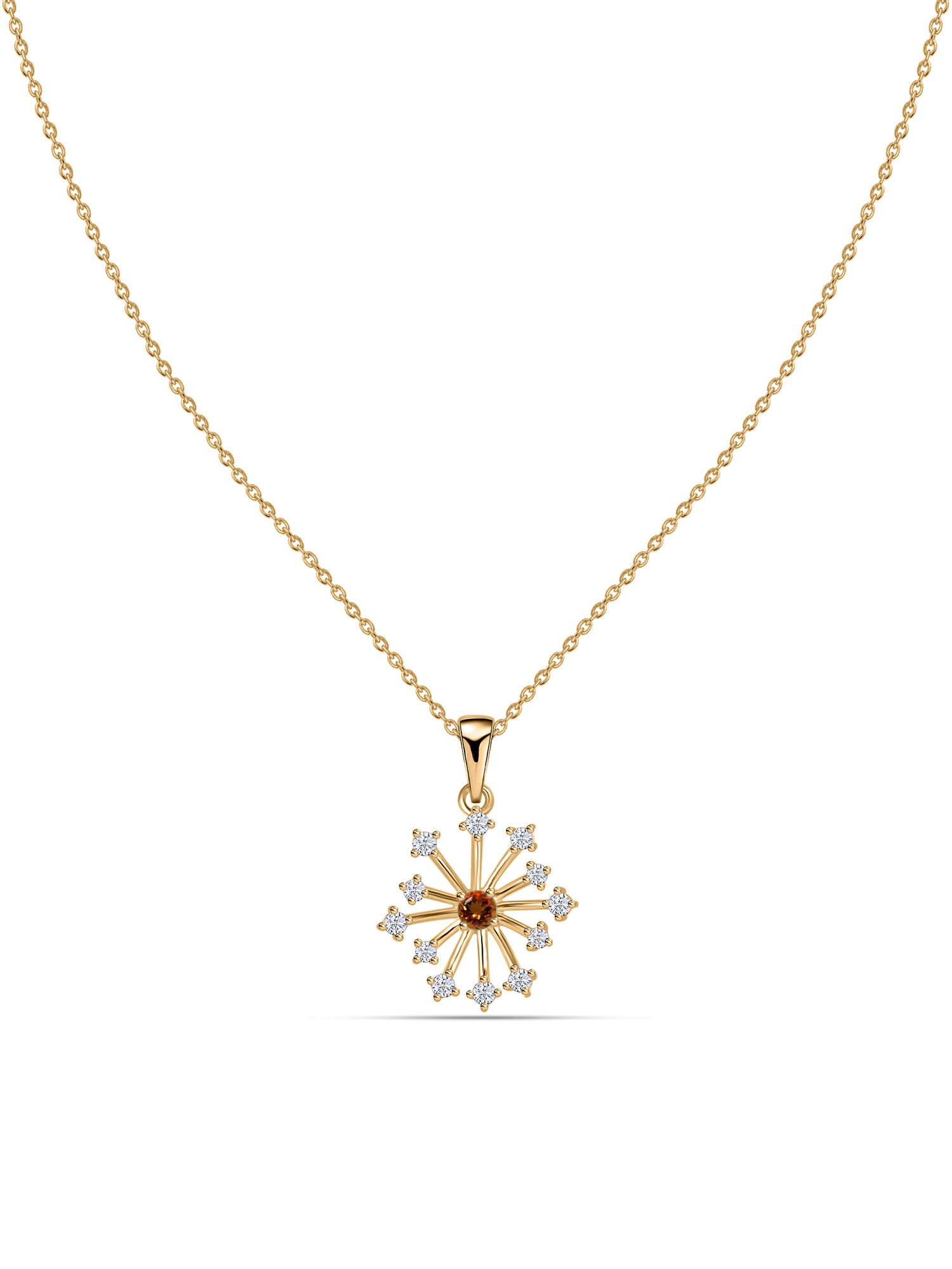 This graceful snowflake pendant captures winter elegance with a sparkling Natural Madira Citrine at its center, surrounded by brilliant lab-grown diamonds. Crafted in lustrous gold, it radiates symmetry and charm — perfect for gifting or adding a seasonal sparkle to your jewellery box—a timeless, nature-inspired design with a modern twist.