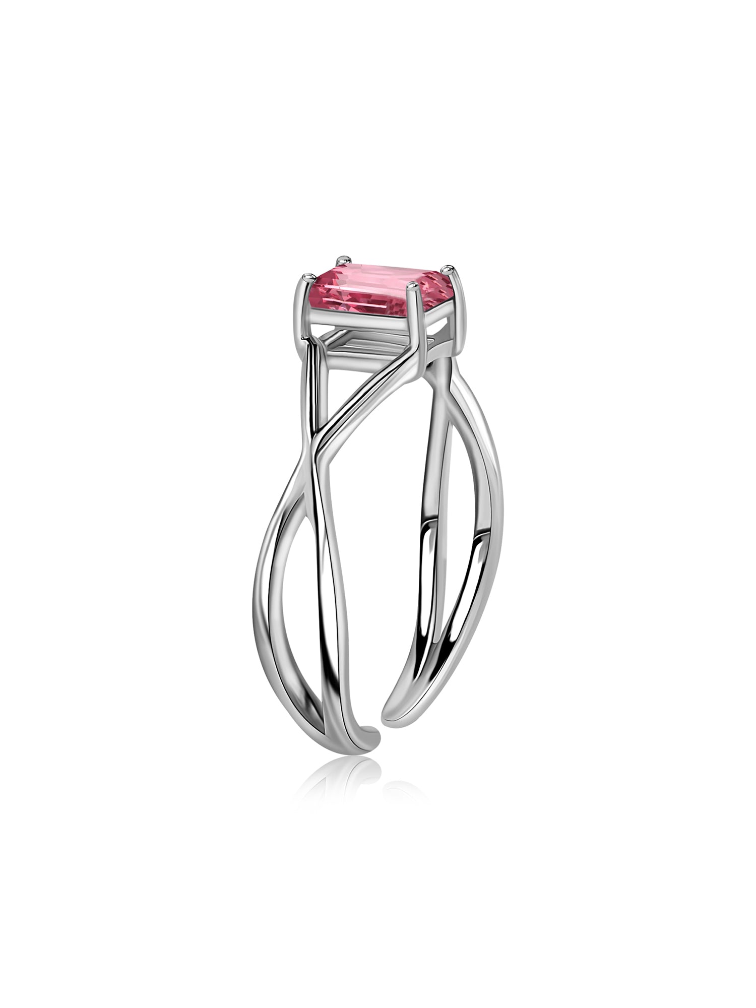 Sleek lines meet subtle sparkle in this contemporary silver ring featuring a natural pink tourmaline Octagon. It's minimal, open band gives it a modern edge, perfect for stacking or solo wear. A fresh statement for everyday elegance.