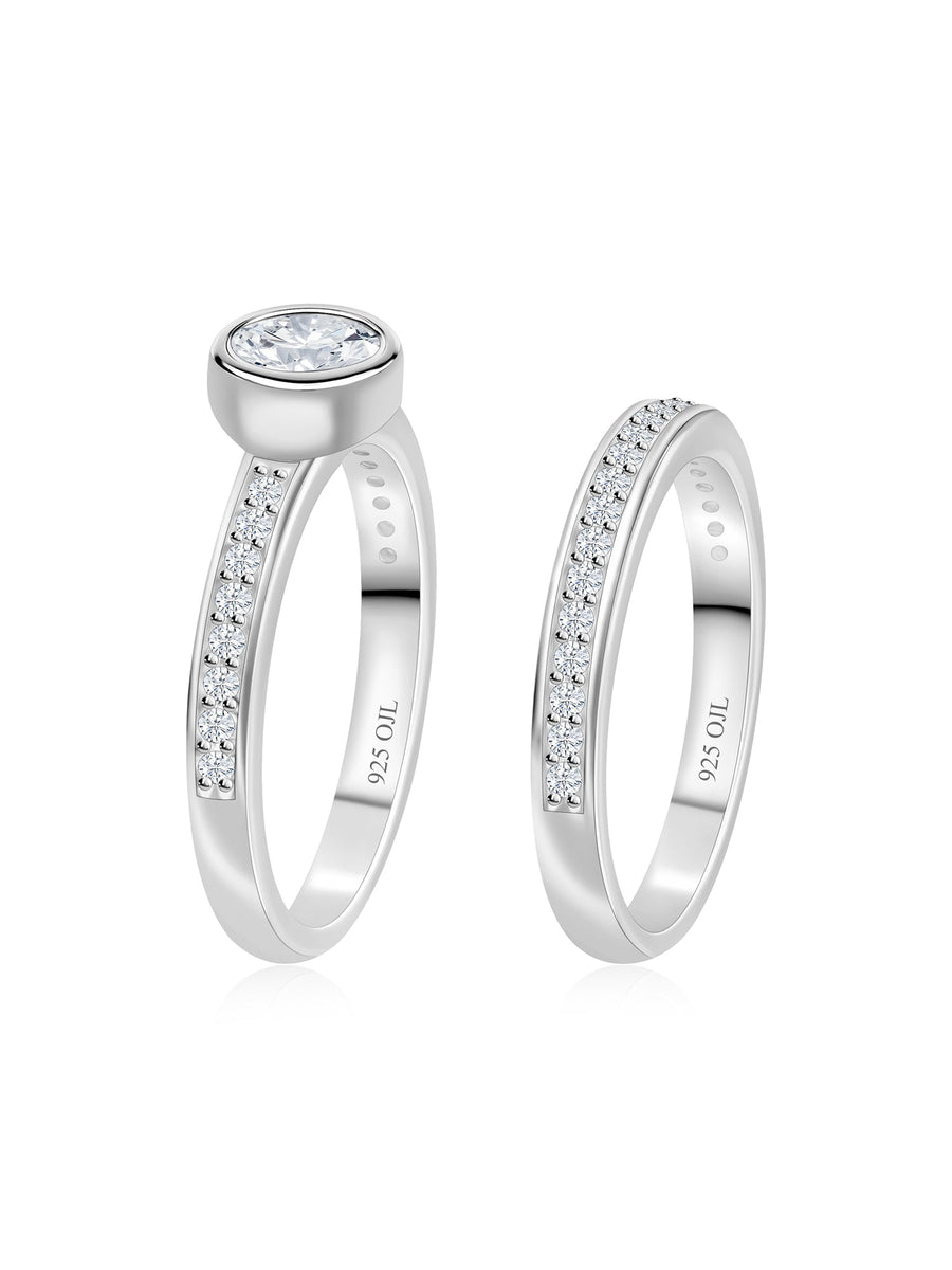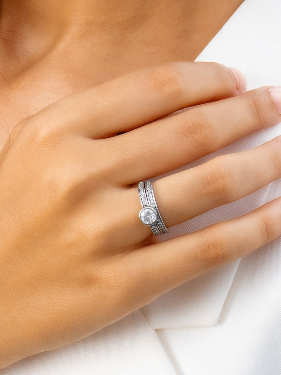A combo of rings. The most selling design where you get two rings for the price of one. A super chic solitaire of American Diamond and a studded band to complete the look.