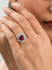 3.5 Carat Ruby Flower Ring In 925 Silver