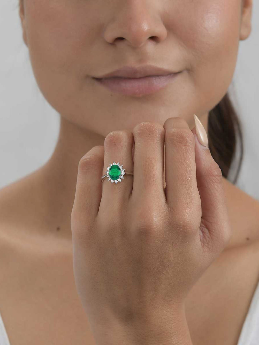 Oval Royal Emerald Silver Ring
