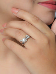 A beautiful Pearl ring. Studded with freshwater Real genuine pearl and American diamonds this pearl pleaser offers lots to enjoy for years to come.