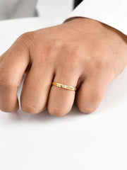 Wedding ring for men studded with a diamond look solitaire made with pure silver that's plated with 2 micron of gold making it suitable for daily wear. Best gift for men