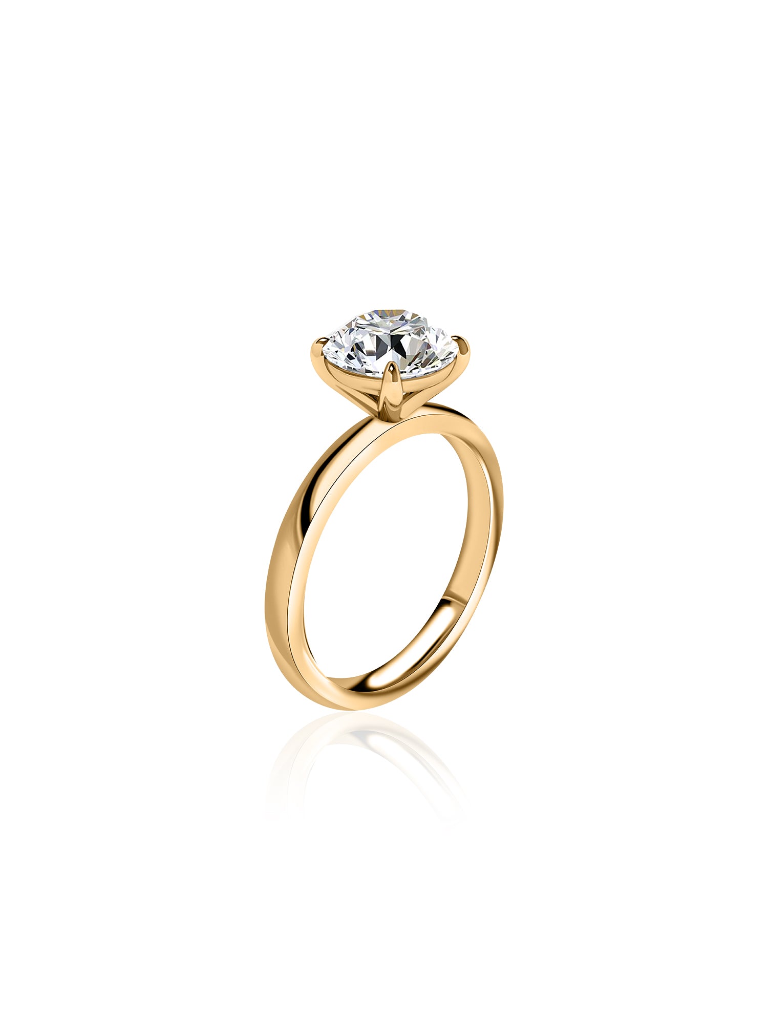 A round lab-grown diamond solitaire set in warm gold, crafted for those who seek timeless sophistication.