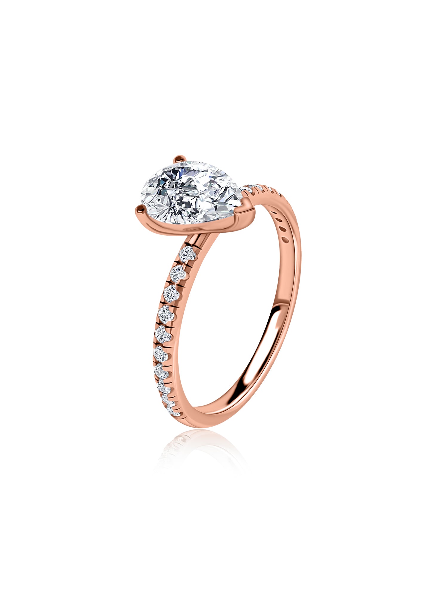A pear-shaped solitaire that pairs gentle curves with golden glow for a refined, romantic look.