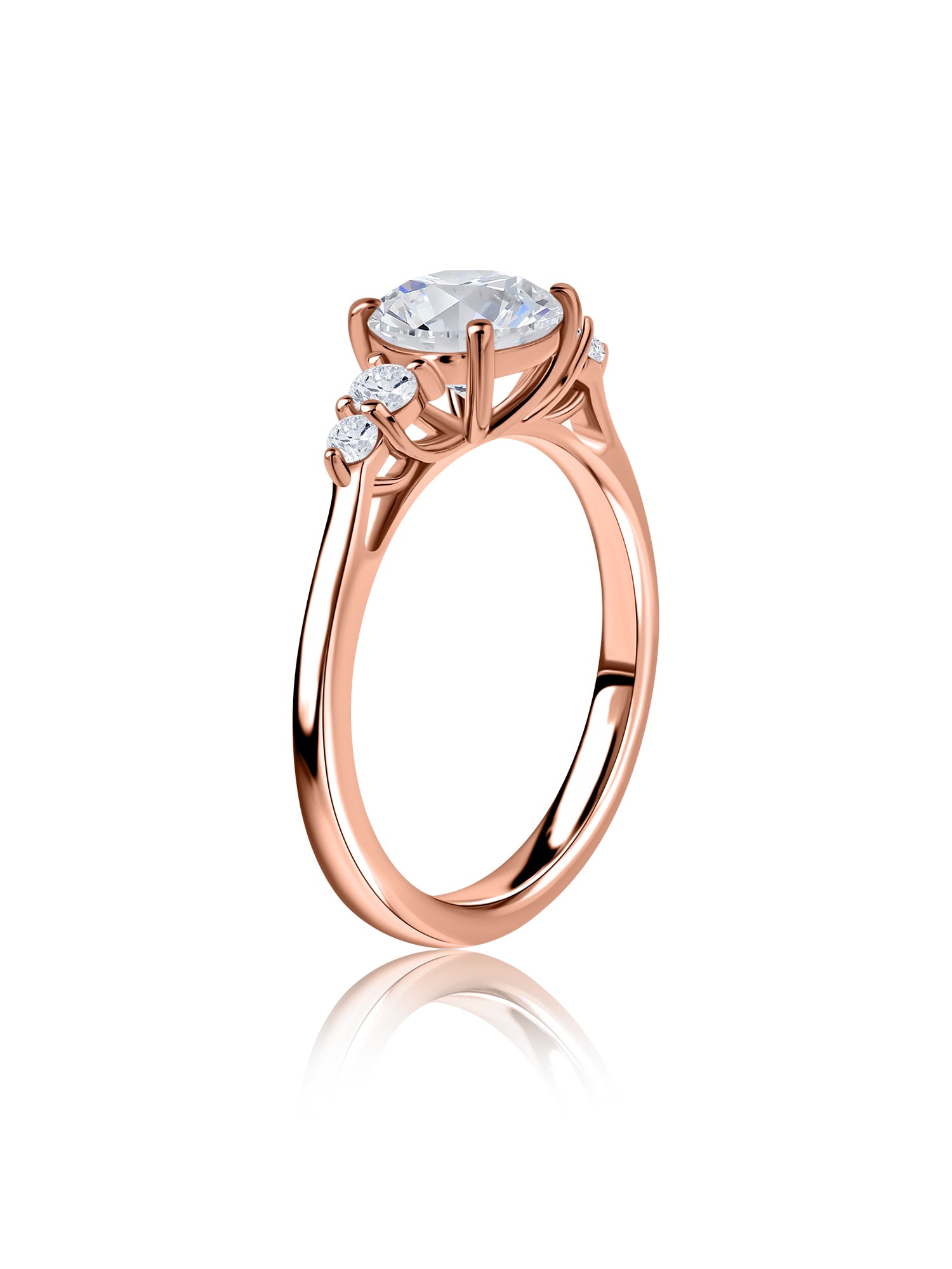 This elegant solitaire engagement ring features a brilliant 1.15 carat round Lab Grown Diamond flanked by sparkling side stones for added glamour. The 1.80 mm band offers a refined balance of grace and strength. A perfect choice for a romantic and radiant proposal.
