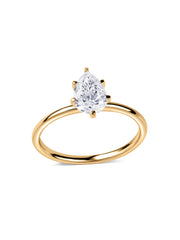 A glam solitaire ring that makes an excellent diamond engagement ring for women. Studded with a pear-shaped lab-grown carat of diamond, approx, and gold.
