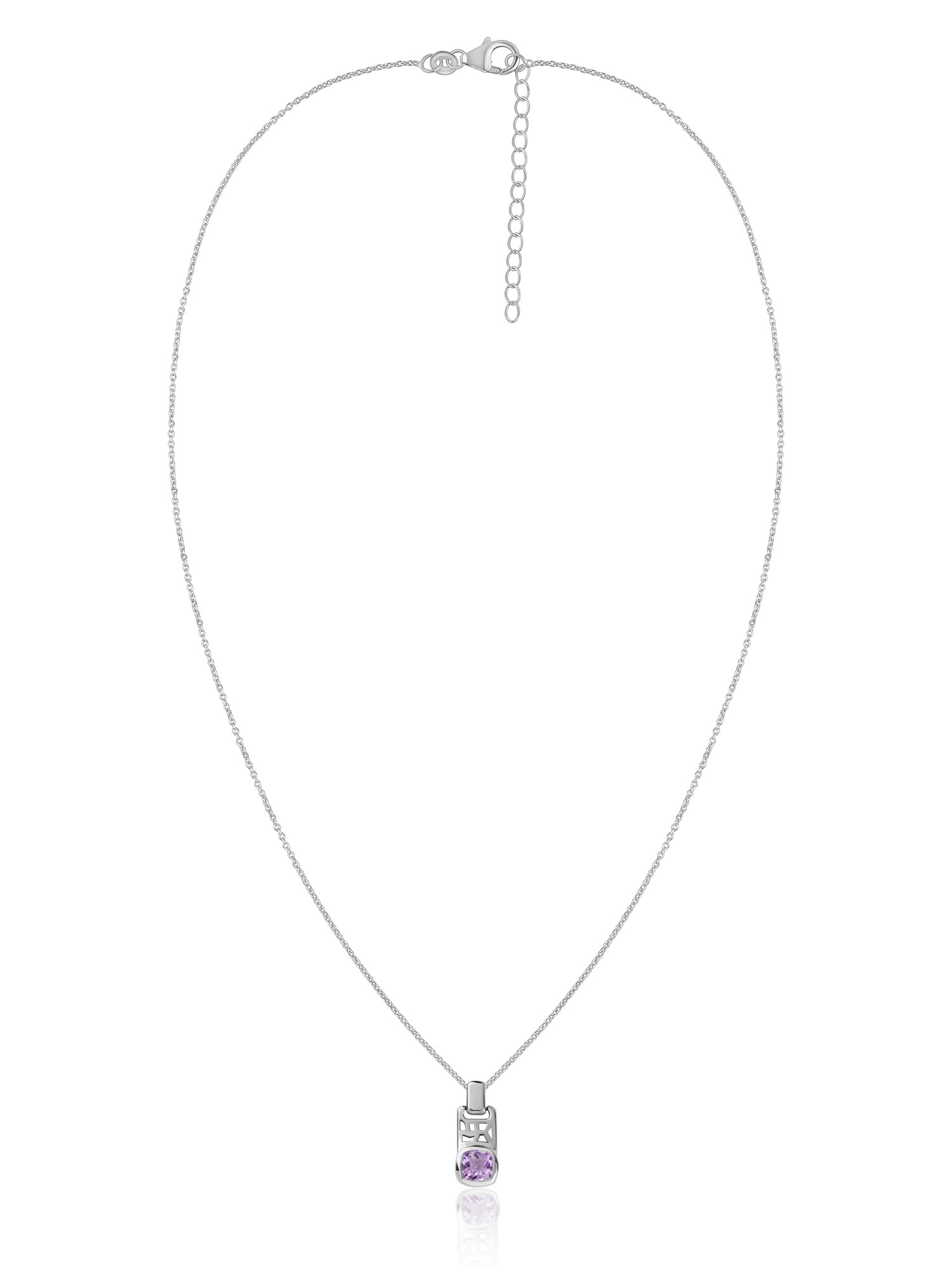 Amethyst Geometric Silver Pendant with Chain