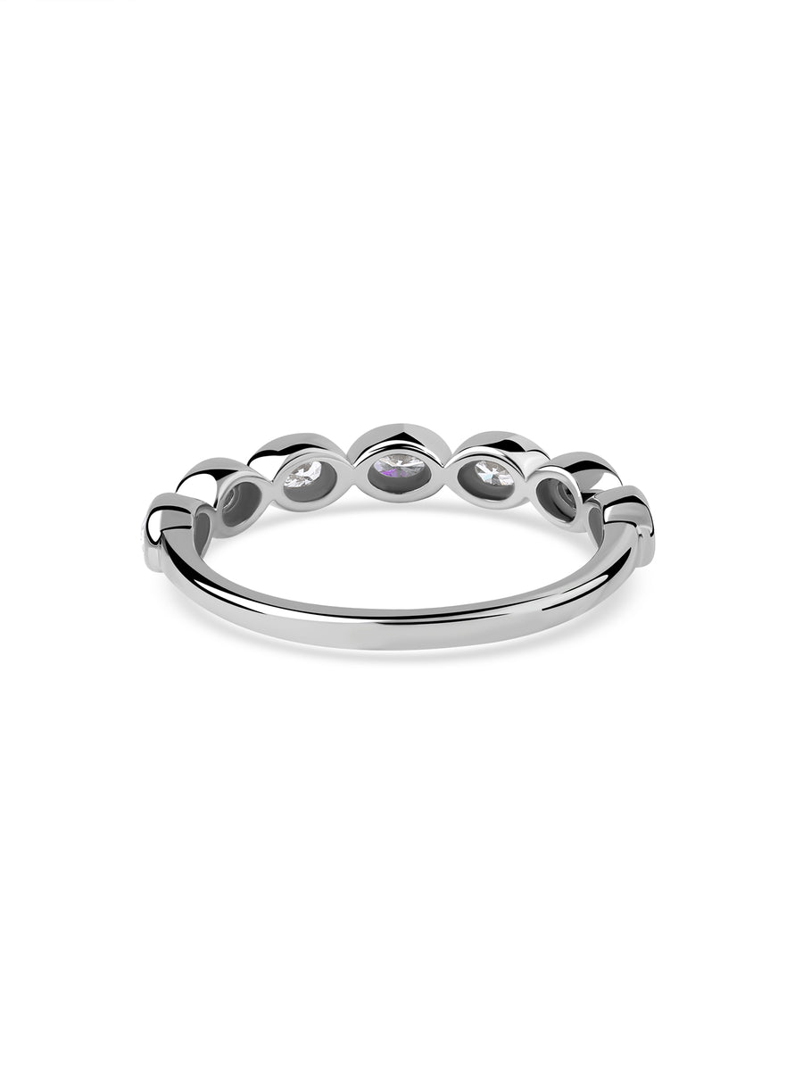 Celebrate your eternal bond with this elegant oval-cut lab-grown diamond band. Designed with love, this minimalist yet meaningful piece features 7 bezel-set diamonds that symbolize every promise you’ll keep. A perfect gift from him to her – timeless, thoughtful, and treasured forever.